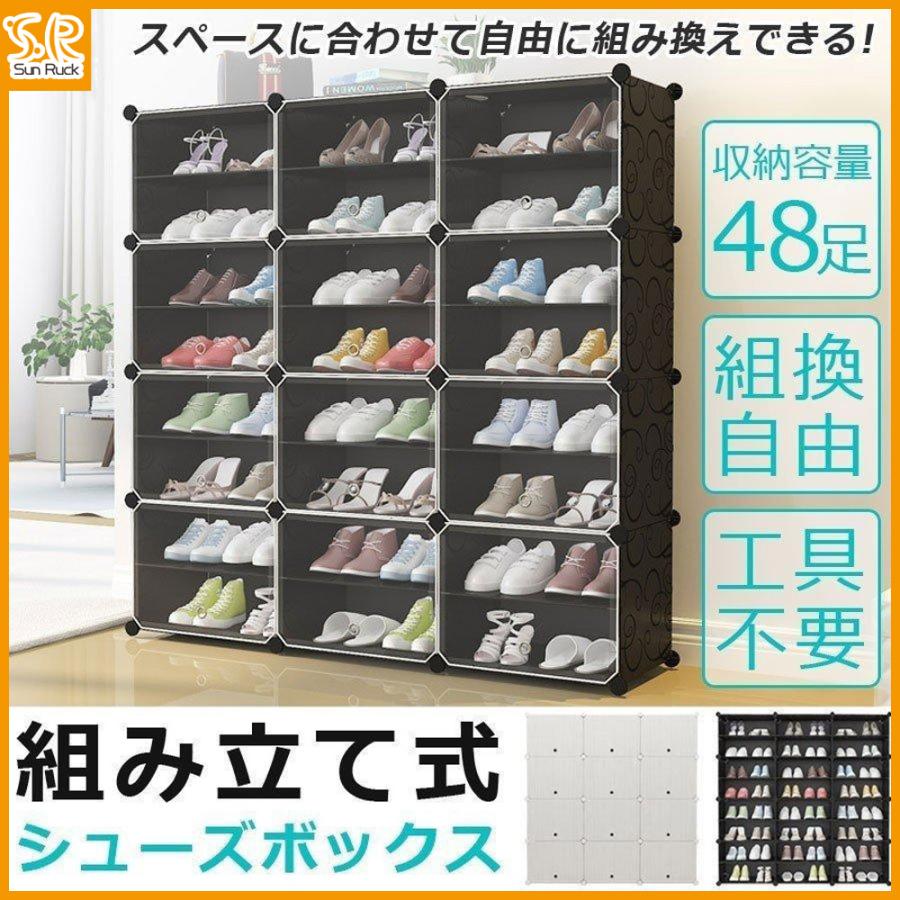 組み立て式 シューズボックス おしゃれ 最大48足収納 大容量 スリム 薄型 積み重ね シューズラック シューズケース 靴箱 下駄箱 靴棚 玄関収納 Sr Sc038 Bk サンルックダイレクト 通販 Yahoo ショッピング